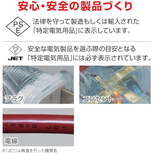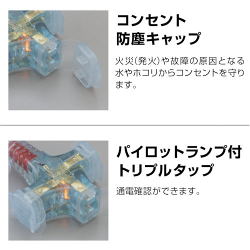 Catalogue number: SX-103-R Features: ● Comes with dustproof cap for outlet. ● Comes with triple outlet with power pilot lamp. Uses: ● As an extended power source for electrical appliances. Specifications: ● Color: Red ● Wire type: Soft VCTF ● Wire specification length (m): 10 ● Wire specification thickness (mm2): 2.0 ● Wire specification number of cores (C): 2 ● Outlet specification rating: 2P, 15A, 125V ● Outlet specification shape: Two-phase 2 ● Number of outlet specifications: 3