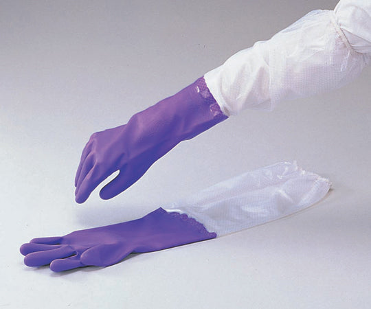 This is a long type that reaches down to the shoulders and is thick enough to cover the entire arm. Size: L Color: Violet Odor-resistant and hygienic processing (fleece lining) Total length: 650mm Material: PVC (polyvinyl chloride resin) non-phthalate plasticizer Comes with rubber to prevent slipping Quantity: 1 pair Case quantity: 5 pairs/bag x 12 bags *Price is per pair.