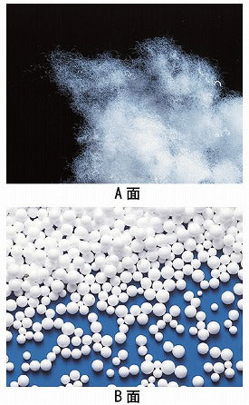 ●Materials/A-side filling: Hollow polyester fiber, Fabric: Wave knit (cotton/polyester), B-side filling: Polystyrene beads, Side: Twill (antibacterial and deodorizing treatment)