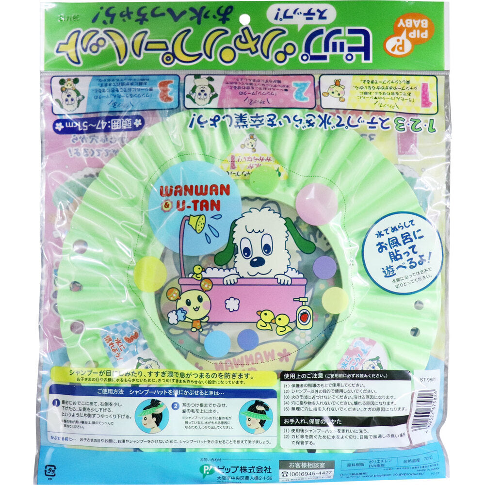 Shampoo training with "Wanwan & Utan"! Graduate from water aversion in 1, 2, 3 steps! Step 1 If you place your forehead on the ▼ sticker with the "Utan" mark, you can have fun shampooing without getting shampoo or water on your face. Step 2 If you place your forehead on the ● sticker with the "Woof Woof" mark, water will start to drip down, so don't be afraid and just endure it. Step 3 If you place your forehead on the sticker with the "Wanwan & Utan" mark, water will flow onto your face. I think it's okay if it gets on your face. Head circumference: 47-51cm ●Color: Green [Raw material resin] Polyethylene, EVA resin [Heat resistance temperature] 70 degrees [Head circumference] 47-51cm [How to use] When putting the shampoo hat on your head... (1) First place it on your forehead, then lower the right side a little, then the left side a little, and so on, slowly lowering each side at a time. (If you have long hair, first tie it up on top of your head.) (2) Put the hat over your ears and push your hair up. (If there is any hair left under the shampoo hat, it may cause water to leak, so make sure to push it out completely.) *Before putting on the shampoo hat... Explain to your child that the shampoo hat is being put on to protect their eyes and face from hot water and shampoo. [How to care for and store] (1) After use, wash the shampoo hat thoroughly. (2) To prevent mold, drain the water thoroughly and store in a shady, well-ventilated place. [Precautions for Use] (Please read before use.) (1) Please use under parental supervision. (2) Do not use for any purpose other than shampooing. (3) Keep away from fire as it may cause melting. (4) Do not insert your fingers or any other objects into the holes as this may cause damage. (5) Do not force your fingers into the holes as this may result in injury.