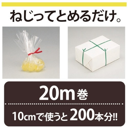 Catalogue number: TF-800WH Features: ● Roll, twist and tie. ● Take out and cut only the amount you need. Uses: ● For organizing wires in offices, etc., and for closing the openings of bags. ● Binding string. Specifications: ● Color: White ● Width (mm): 4 ● Wire diameter (mm): 0.39 ● Length (m): 20 ● Cutter included ● One-touch string with iron wire Material/Finish: ● White annealed iron wire 0.39 mm, 4 mm wide polyvinyl chloride coating
