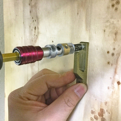 Catalog number: K-25 Features: ●Can be attached and detached with one touch even with the double-headed + driver bit attached to the electric screwdriver. ●Adapter for impact drivers that can be used with hexagonal shaft tip parts. ●The guide surface of the main body is thin, so the corners of the bracket will not be scratched. ●2.5mm round shaft drill can be replaced with the included hexagonal wrench. Specifications: ●Blade diameter (mm): 2.5 ●Shank diameter (mm): 6.35 Set contents/accessories: ●2 hexagonal wrenches for adjustment Caution: ●This product is a pilot hole drill to be used with a double-headed + driver bit with a total length of 65mm or more attached. ●If the drill becomes dull or spins freely, re-tighten the hexagonal screw. ●If the drill still does not cut well, replace the drill.