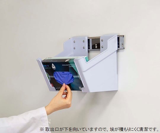 This is a holder for mounting cases for gloves, masks, aprons, etc. on the wall.