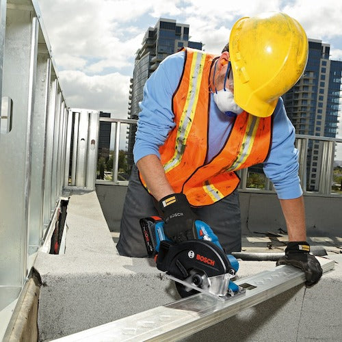 Catalogue number: GKM18V-50HSET Features: ● Comes with chip container box ● Electronic brake function ● Soft start function ● LED light ● Cutting position mark (base plate) ● Comes with large hook ● Ergonomically designed grip that is easy to hold Applications: ● Cutting metals, etc. Specifications: ● Cutting depth (mm): 50 ● No-load speed (min-1): 4250 ● Width (mm): 310 ● Depth (mm): 214 ● Height (mm): 180 ● Voltage (V): DC18 (rechargeable dedicated battery for Bosch Pro) ● Saw blade diameter: 130-136mm ● Saw blade mounting hole diameter: 20mmφ Material/Finish: ● Polyamide resin Set contents/Accessories: ● Main unit ● 5.0Ah battery (A1850LIB) x 1 ● Charger (GAL1880CV) ● Parallel guide ● Chip saw (136mmφ/30 teeth) x 1