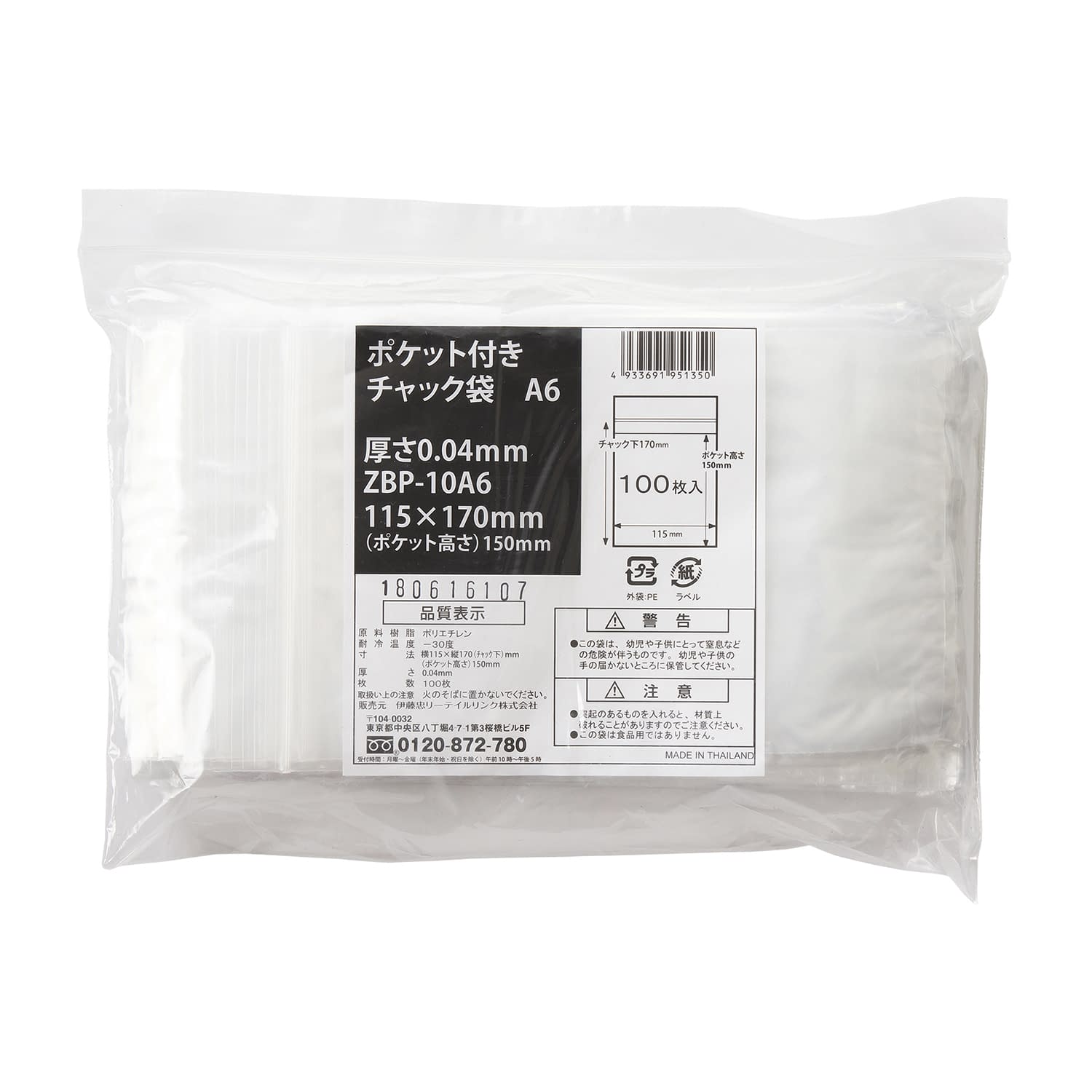 Zipper bag with pocket (A6) A6 Zippered plastic bag 25-2276-02 Itochu Retail Link ZBP-10A6 (100 pieces)