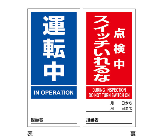 The magnet type makes it easy to install and remove. Display: Blue background with white "In operation" / Red background with white "Inspection in progress, do not turn on"