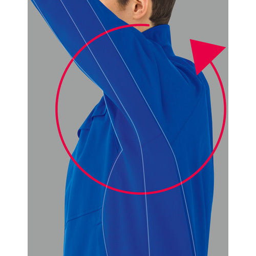 Catalog number: VE626-UE-S Features: ●Highly stretchy material with excellent sweat absorption and quick drying properties is used to achieve a comfortable fit and ultimate athletic performance. ●New three-dimensional cut structure of the sleeves allows for comfortable arm movement without stress in 360 degrees. Specifications: ●Color: Moss green ●Size: S ●Length (cm): 60 ●Chest (cm): 104 ●Anti-static workwear JIS compliant ●With cuff adjustment dot buttons ●Left chest pocket Material/Finish: ●100% polyester ●Zipper, dot button: Resin Note: ●The silhouette is slimmer than the regular blouson of the same manufacturer.