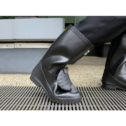 Catalog number: 966KPM2-26.5 Features: ●The first product in the industry to pass the S-class instep protector M standard for general work. ●Uses a lightweight resin instep protector. ●Unlike add-on instep protectors, there is no risk of the band breaking or coming off, greatly reducing the risk of it falling off. ●It is fixed so that it always overlaps with the toe cap, preventing falls and accidents caused by the instep protector slipping out of place. ●The instep protector slides up even when bending, making it less likely to interfere with movement. Specifications: ●Dimensions (cm): 26.5 ●Color: Black ●Foot width size: EEE ●Standard: JIS T8101 C2/S/M ●Compressive load resistance (kN): 10±0.1 ●Shoe length (cm): 32.5 ●US (American) standard size: 8.5 ●UK (British) standard size: 8.5 ●EU (European) standard size: 43 ●JIS T8101 C2/S/M Material/Finish: ●Toe cap: Steel ●Upper protector: Resin ●Upper, sole: Synthetic rubber (non-oil resistant)