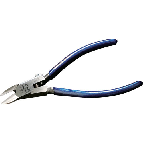 Catalog number: 160FW125 Features: ●Ultra-thin blade type. ●Comes with a stopper to prevent the blade from misaligning. ●Comes with a spring stopper to prevent the spring from falling. Applications: ●Precise cutting of gates for plastic molded products. Specifications: ●Total length (mm): 125 ●Cutting capacity (mm) ABS resin: φ2 ●Round blade ●Comes with spring ●Comes with soft cover Material/Finish: ●Carbon steel ●Grip: PVC