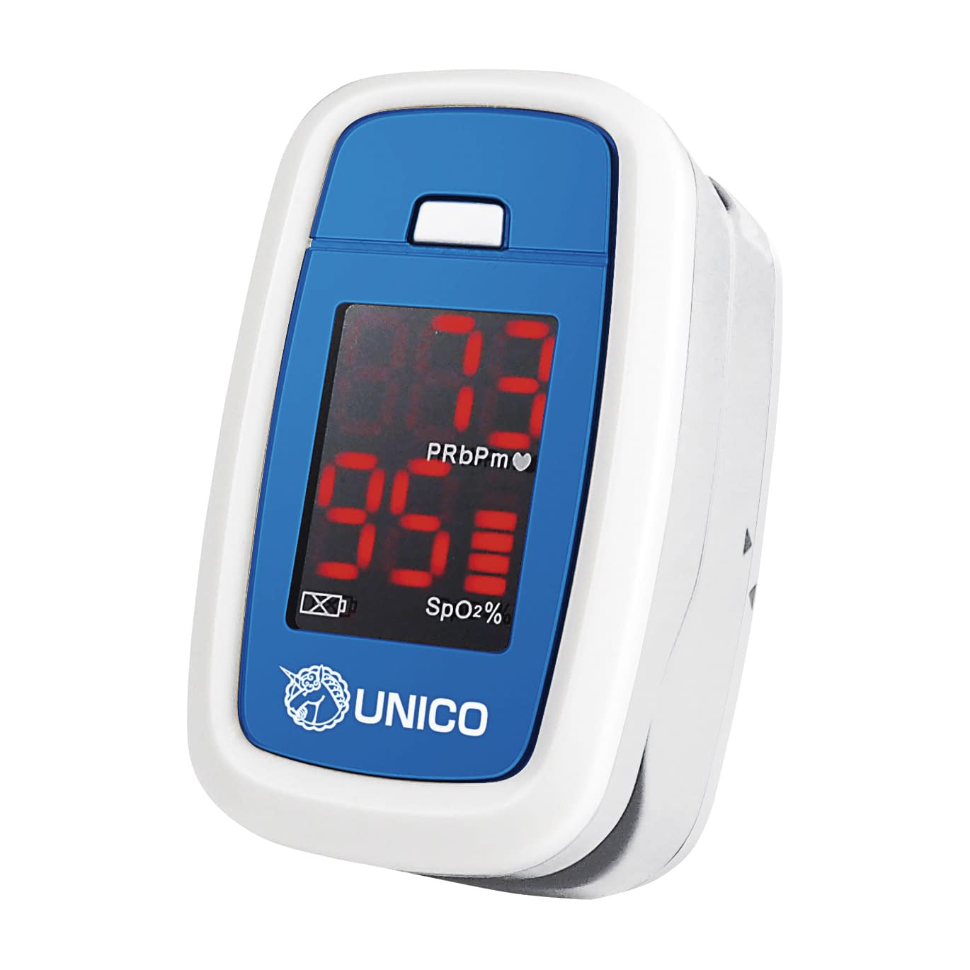 Manufacturer part number: 24-8917-00 Product description ●Monitor display that is easy to see even in dark places. ●Lightweight and compact model, easy to carry. ●Eco-friendly design with auto power off. ●A low-priced product with limited functions. ●Comes with a silicone cover for peace of mind. Product Specifications ●Color: Blue Product size: W36×D61×H32mm Weight: 34g (excluding batteries) ●Material: Protective cover: ABC resin, Finger insertion part: Thermoplastic elastomer ● Measurement range: SpO2 = 0 to 100%, pulse rate = 30 to 250 bpm Measurement accuracy: SpO2 = ±2% (70-99%), Pulse = ±2bpm (30-250bpm) Power supply type: 2 AAA batteries (included) Power supply type: 2 AAA batteries (included) ●Individual packaging quantity: 1 piece ●Accessories: Silicone cover, strap Pharmaceutical classification: Controlled medical device/special control applicable Medical device approval, certification, and notification: Certification number 229AKBZX00070000 Sales name: Unico Pulse Oximeter