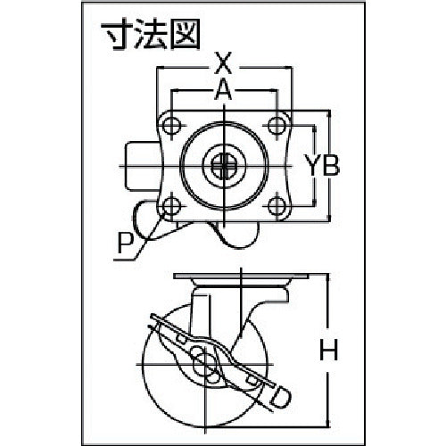 Catalogue number: G-38URS Features: ●Standard small caster. Available in a range of sizes, from the smallest to the largest. ●Urethane wheels have excellent oil and abrasion resistance. Applications: ●Lightweight trolleys Specifications: ●Wheel diameter D (mm): 38 ●Type: Swivel (with stopper) ●Allowable load (daN): 28 ●Allowable load (kgf): 28.6 ●Wheel width (mm): 16 ●Mounting height H (mm): 50 ●Mounting seat A (mm): 46 ●Mounting seat B (mm): 38 ●Mounting pitch X (mm): 36 ●Mounting pitch Y (mm): 28 ●Mounting hole diameter P (mm): 5.3 ●Allowable load (N): 280 ●Swivel (with stopper) ●Plate type Materials/Finish: ●Metal fittings: Steel ●Metal fittings surface treatment: Trivalent chromium finish ●Wheels: Nylon wheels, urethane