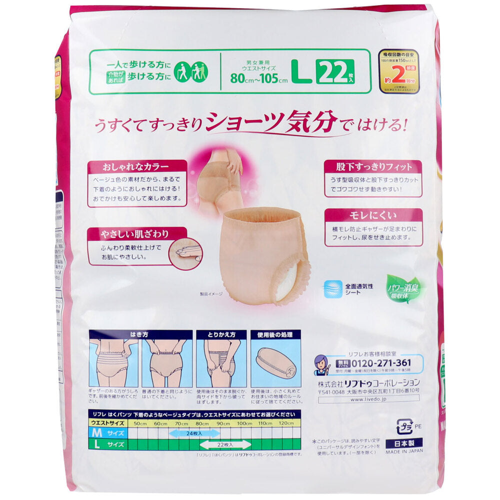 Refre Pants, Beige, Underwear-like Type, L Size, 22 Pieces, 1 Piece