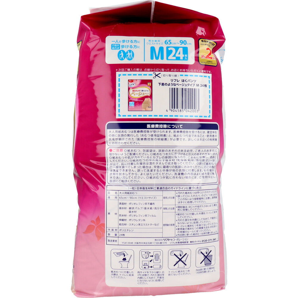 Refre Pants, Beige, Underwear-like Type, Medium Size, 24 Pieces, 1 Piece