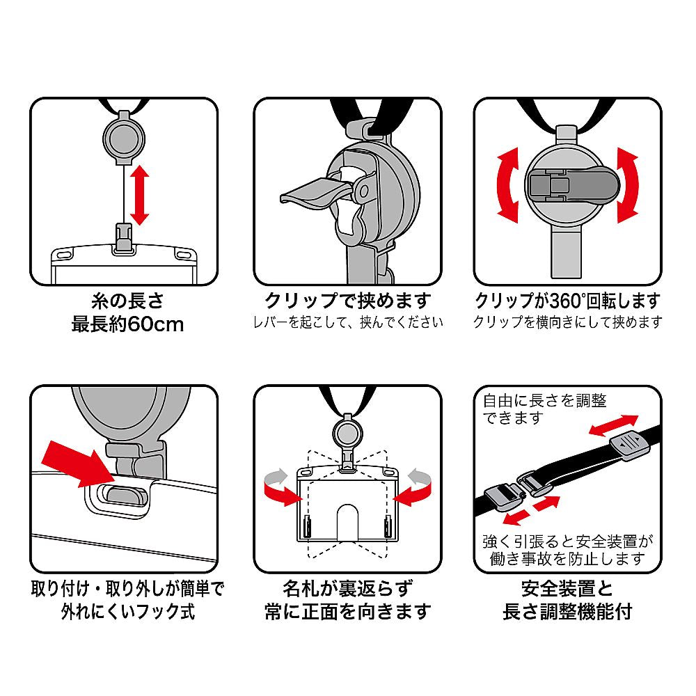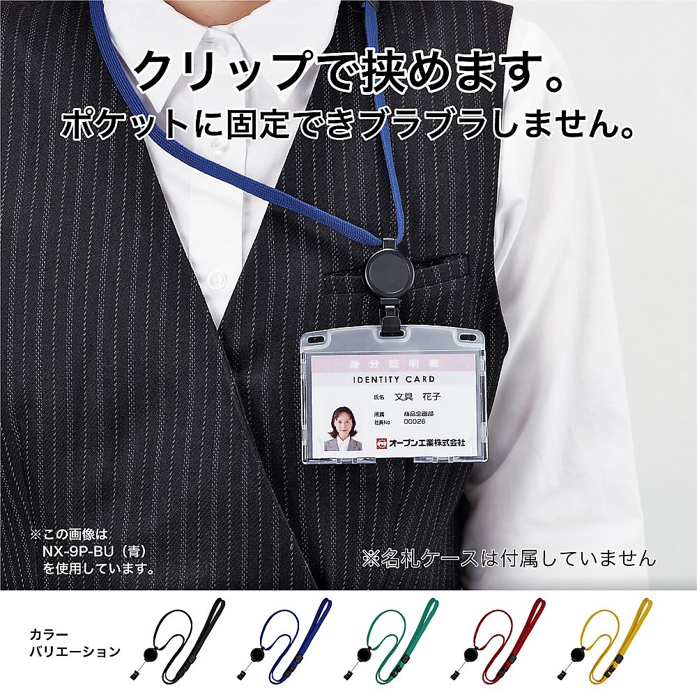 Easy one-handed operation, convenient reel type The clip on the back allows you to attach it to your pocket. Name tags never turn over and always face forward. The safety device prevents the string from coming off if you pull it too hard. Reel clip and hook type Strap color: Yellow Material: Strap/Recycled PET Tape width x total length (strap circumference): approx. 10 x 900mm Maximum reel length: Approx. 600mm Length adjustment function and safety device *We can also engrave names such as hospital names (from 100 pieces). Please contact us separately.