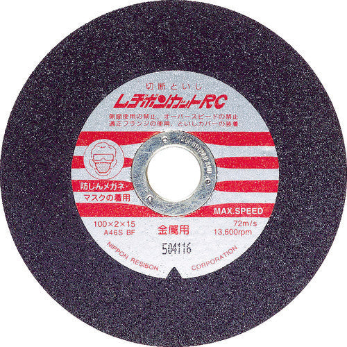 Catalog number: RC1002-46 Features: ●A wide variety of types and sizes are available to meet various needs. Applications: ●For cutting general steel round bars, angles, pipes, thin plates, etc. Specifications: ●Abrasive: A ●Grain size (#): 46 ●Hardness: S ●Outer diameter (mm): 100 ●Blade thickness (mm): 2.0 ●Hole diameter (mm): 15.0 ●Maximum operating speed (rpm): 13600 ●Tools used: Disc grinder and grinding wheel cutter