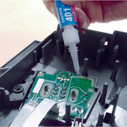 Catalog number: 401-BOX Features: ●High-performance instant adhesive that is ultra-fast and suitable for difficult-to-adhere materials. ●For silicone and POM, hardening accelerator 770 is required. Applications: ●Adhesion to PBT, polyacetal, soft PVC, polyurethane, silicone rubber, etc. ●Also for porous materials such as wood, paper, leather, cork, and fiber. Specifications: ●Color: transparent ●Capacity (g): 3 x 10 tubes ●Fixing time (23°C): 20 to 45 seconds ●Viscosity (mPa·s): 70 to 110 ●Usage temperature range (°C): -55 to 80 ●Fixing time (22°C): 20 to 45 seconds ●Low viscosity type ●Usage temperature range: -55 to 80°C ●Curing time (mild steel): 5 to 20 seconds ●Recommended hardening accelerator (for difficult-to-adhere materials): 38497 ●Tube type Material/Finish: ●Main component: Cyanoacrylate