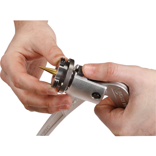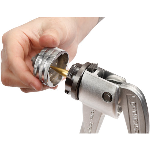 Catalog number: R12518Y Features: ● Head can be attached and detached with one touch. ● Power torque mechanism allows pipe expansion with half the force of conventional products. ● Forged aluminum lightweight body with excellent strength and durability. ● Long pipe expansion section and rivet fixed head expand on the same axis, so processing precision is good and creates a gap that is ideal for brazing. ● Tapered pin is titanium coated, so it is resistant to wear and has a long life. Applications: ● For expanding soft copper pipes. Specifications: ● Size (outer diameter) (inch): 5/16 to 2 5/8 ● Wall thickness (mm): 2.5 ● Set contents: Main body, head (3/8, 1/2, 5/8, 3/4, 7/8, 1), reamer, case ● Pipe expansion capacity: 5/16-2 5/8 Note: ● Adapter (R11007) sold separately is required for 2 inches or more.