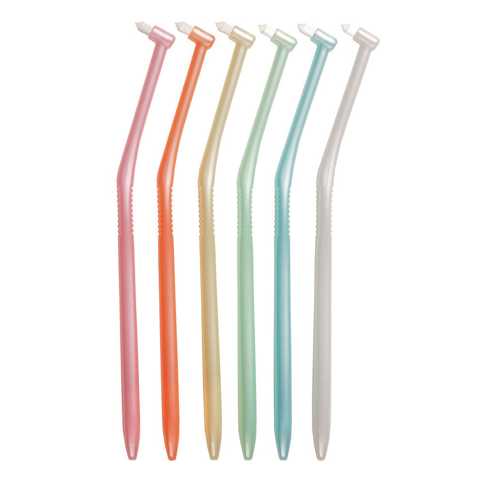 The bristles reach areas that are difficult to brush, such as the back teeth, between the teeth and gums, and in the gaps between orthodontic appliances, preventing any areas from being left behind. Material: Brush/nylon, handle/polypropylene