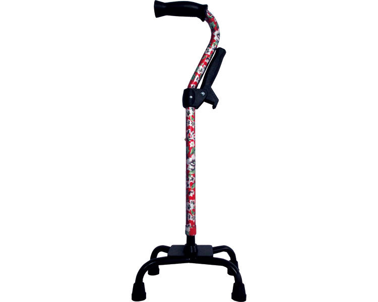 Four-pronged cane with auxiliary grip / WB3801 Flower pattern red 1 piece