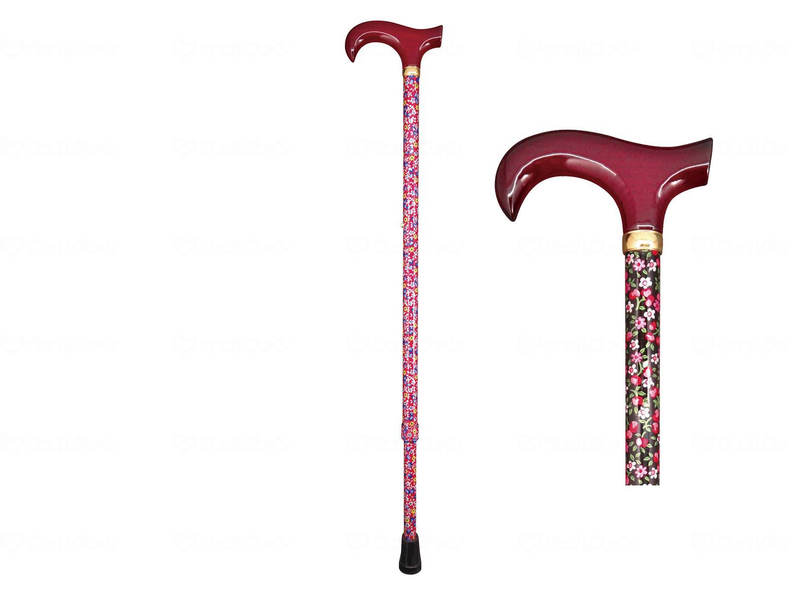 Tsuchiya Sangyo Small Flower Pattern Telescopic Walking Stick Black