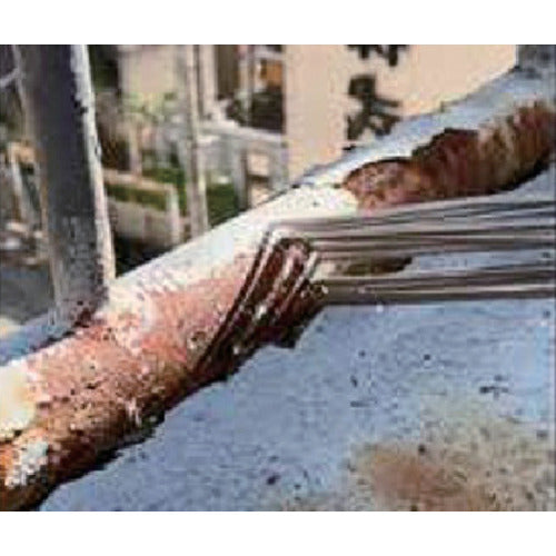 Catalog number: 1251020000 Features: ●Initial release sale: Set with 100 2Φ needles (limited quantity). ●Turn your impact driver into an electric chisel! ●No need for an air compressor! ●Ideal for scraping edges and corners that disc grinders cannot reach! Uses: ●For removing paint and rust from bolts and nuts. ●For chipping edges of handrails, etc. ●For removing slag after welding. ●For removing rust and shells from ships. Specifications: ●Total length (mm): 310 ●Grip (mm): 30 ●Grip total length (mm): 80 Material/Finish: ●Iron Set contents/Accessories: ●Needle Kogera main body ●13 needles + 100 needles ●1 side handle ●1 hex wrench ●1 grub screw Caution: ●Use the impact driver at a rotation speed of around 2000 rpm. If used at high speeds, the clutch will slip, reducing impact power and making the machine prone to overheating. When using the Needle Woodpecker, be sure to wear safety glasses, a dust mask and anti-vibration gloves.