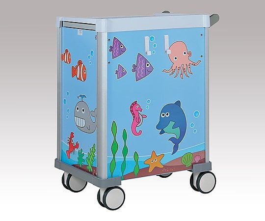 A cart with cute illustrations. All drawers can be locked with one key. The drawers come with a locking function to prevent them from popping out when moving the cabinet even if the lock is not engaged. Materials: Body: Steel (powder coated), Top: ABS resin, Handle: Aluminum, Divider: AS resin, Divider strip: ABS resin Drawer internal dimensions: Small/569×398×76mm×2 levels, Medium/569×398×115mm×2 levels, Large/569×398×236mm×1 level Tabletop size: 590 x 420 mm Number of partitions that can be installed: Vertical/15, Horizontal/10 Caster: φ125mm (with front wheel stopper) Weight: 65kg Drawer lock mechanism included With auxiliary top plate Accessories: 2 keys, 1 top divider (P-FD3), 1 middle divider (P-FD6), 6 magnetic label holders, 2 resuscitation board hooks blue Size (mm): 690 x 540 x 930 (excluding handle) *The resuscitation board (transparent) is not included with the cart itself. LUXE Auxiliary tabletop size: 350 x 380 mm