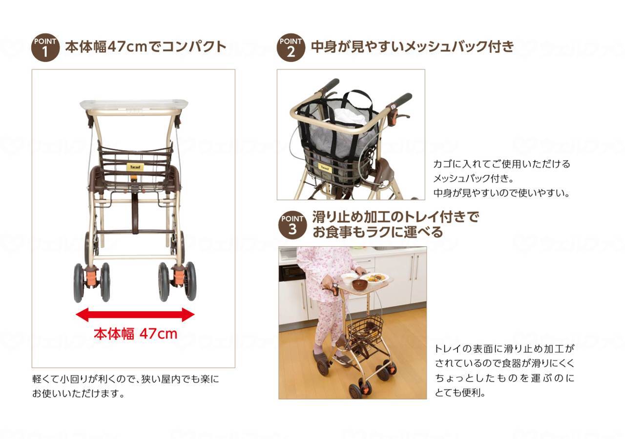 ●The rear wheels are designed to be less slippery on flooring, etc. Reduces the risk of falling over!