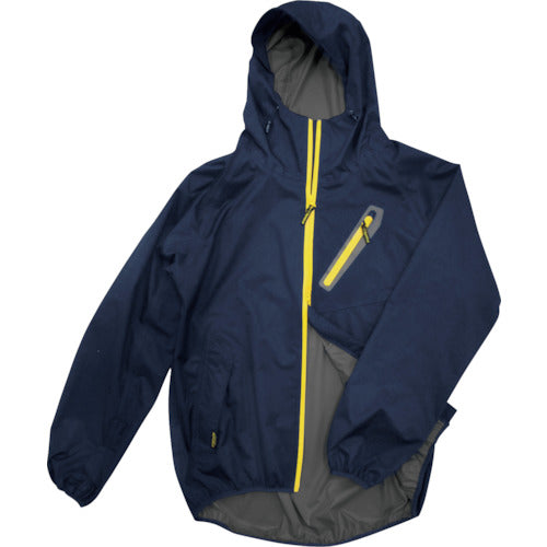 Catalogue number: H0820AANVM Features: * Made of stretch fabric that allows for easy movement. * High moisture permeability prevents stuffiness and allows for comfortable wear. * Can be used in a variety of situations, from rainy days to sunny days. * Features a waterproof double zipper that can be opened from the top and bottom. * Comes with a waterproof zipper chest pocket. * Comes with an adjustable hood. * Comes with thumb holes. * Comes with a velcro strap with reflective material at the bottom of the pants, and a waist cord. Specifications: Color: Navy; Size: M; Height (cm): 155-165; Chest (cm): 113; Waist (cm): 72-82; Inseam (cm): 70; Water resistance: 10,000 mm [[H2O]] or more; Suitable height (cm): 165; Water resistance: 10,000 mm [[H2O]] or more; Moisture permeability: 8,000 g/[[M2]]/24 hr or more; Material/Finish: Fabric: 100% polyester, TPU laminate (water-repellent surface)