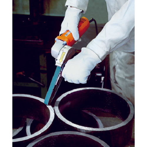 Catalog number: EBS-20 Features: ●Easy replacement of the abrasive belt. ●The body angle (guard) can be adjusted according to the working position and the shape of the workpiece. ●Suitable for welding bead cutting, casting burr removal, etc. Applications: ●Welding bead cutting, casting burr removal, etc. Specifications: ●No-load speed (min-1): 10000 ●Belt dimensions (mm): 20 x 520 ●Power supply (V): AC100 ●Power cord length (m): 2.5 ●Power consumption (W): 510 ●Rated current (A): 5.2 Set contents/accessories: ●Sub-handle ●Round shoe ●Hexagonal wrench 2.5 mm: 1 piece ●Hexagonal wrench 4 mm: 1 piece ●Abrasive belt Z #60 x 20 mm: 2 pieces (including 1 attached to the body), #80 x 20 mm: 1 piece, #100 x 20 mm: 1 piece, #120 x 20 mm: 1 piece