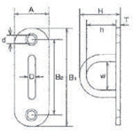 Catalog number: PD-6 Features: ●Can be installed even on surfaces with a narrow installation width. ●Please use countersunk screws. Applications: ●For installation on posts, walls, etc. Specifications: ●Load capacity (kN): 0.20 ●A (mm): 20 ●D (mm): 6 ●B1 (mm): 60 ●H (mm): 25 ●W (mm): 18 ●B2 (mm): 46 ●d (mm): 5.2 ●h (mm): 17 ●T (mm): 2 Material/Finish: ●Material: Stainless steel (SUS304) ●Finish: Electrolytic polishing finish