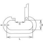 Catalog number: B-195 Features: ● Locks with a holo screw, so you can rest assured that the hook will not accidentally open. Applications: ● As a connecting metal fitting for chains, wires, ropes, etc., and as a joint for terminal metal fittings. Specifications: ● Working load (kN): 0.98 ● Wrench size (mm): 1.5 ● D (mm): 6 ● L (mm): 40 ● S (mm): 15 ● B (mm): 15.5 ● Uses a hexagonal wrench Material/Finish: ● Stainless steel (SUS304) ● Surface treatment: Barrel polishing finish