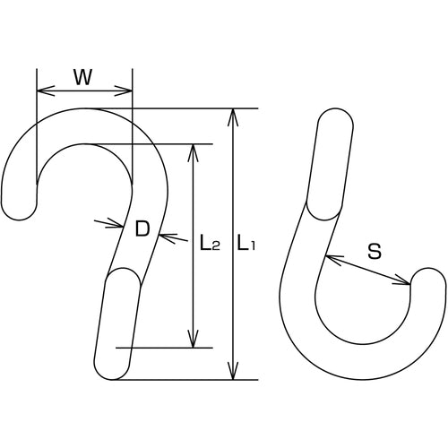 Catalog number: B-1332 Features: ● Made of stainless steel, it is rust-resistant and has excellent durability. Applications: ● For rope crossings. Specifications: ● Working load (kN): 0.29 ● Type: Twist ● D (mm): 6 ● L1 (mm): 51 ● L2 (mm): 39 ● S (mm): 13 ● W (mm): 15 Material/Finish: ● Stainless steel (SUS304)