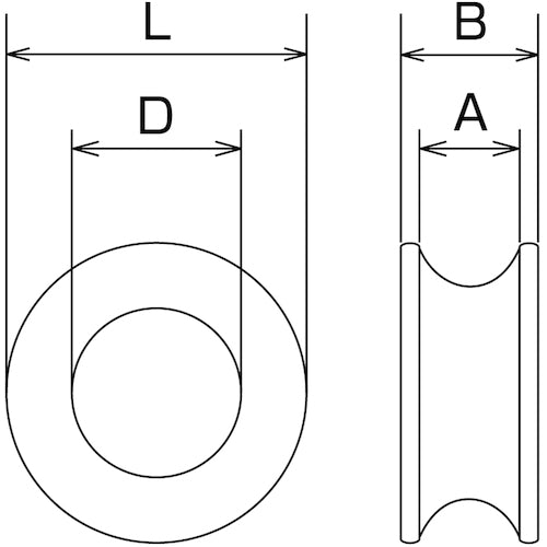 Catalog number: B-3048 Features: ● A perfectly round thimble. Applications: ● Place the end on a wire rope with an eye and use it as a wire rope. ● To prevent wire wear. Specifications: ● Suitable rope diameter (mm): 6 ● A (mm): 6 ● B (mm): 9 ● D (mm): 12 ● L (mm): 22 Material/Finish: ● Stainless steel (SUS304)
