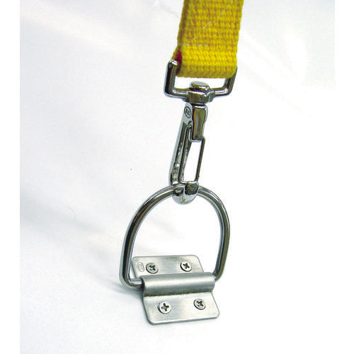 Catalogue number: B-599 Features: ● A D-shaped ring with straight and curved parts. ● The connection is welded, so it is strong. Applications: ● As a metal fitting for bags, clothing, etc. ● The straight part can be used with wide belts such as rubber or fiber, and the curved part is used for chains, wires, ropes, etc. Specifications: ● Working load (kN): 0.78 ● D (mm): 6 ● A (mm): 50 ● B (mm): 47 Material/Finish: ● Stainless steel (SUS304) ● Finish: Barrel polishing finish