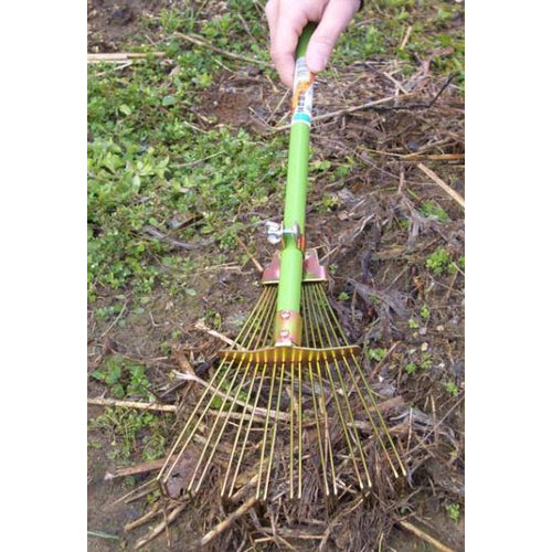 Catalogue number: 12041 Features: ● Strong steel claws. ● U-shaped claws at the tips. ● U-shaped claws will not pierce leaves, trash, etc. ● Claw width can be expanded from 90 to 150 mm. Uses: ● For collecting leaves, grass, and trash. Specifications: ● Total length (mm): 394 ● Number of claws (pieces): 8 ● Tip width (mm): 90 to 150 ● Claw length (mm): 175 Material/Finish: ● Claws: Steel wire ● Handle: Steel