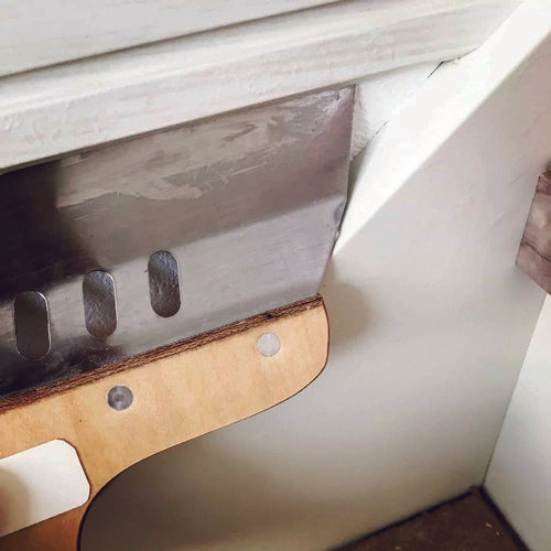 Catalogue number: J-Z129 Features: ●Can be used for turning and cutting joints. ●This spatula stabilizes the opening of the cross joints, the angle of incidence of the cutter, and the contact angle of the spatula by the contact angle of the spatula, rather than by the unstable force of the wrist. ●When cutting joints, it creates a slight bend in the cross and cuts it, preventing gaps from appearing when the cross shrinks. Uses: ●For cutting unnecessary parts of wallpaper, etc. Specifications: ●Total length (mm): 270 ●Blade width (mm): 55 ●Blade length (mm): 270 ●Blade thickness (mm): 1.2 ●Base thickness (mm): 1.2 ●Tip thickness (mm): 1.2 ●Stainless steel blade 1.2 thickness Material/Finish: ●Handle: Shina plywood ●Blade: Stainless steel