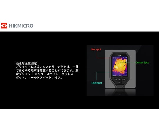 Full screen measurement with quick temperature measurement presets for a clear view. Measurement presets: Center Spot, Hot Spot, Cold Spot, Off.