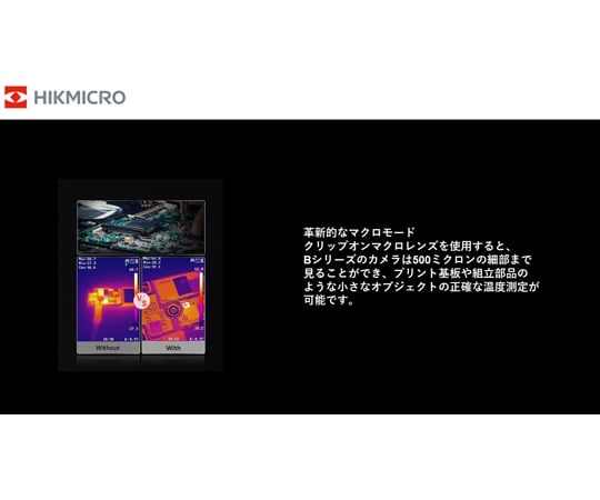 Innovative Macro Mode With the clip-on macro lens, the B-Series cameras can see details as small as 500 microns, enabling accurate temperature measurements of small objects like printed circuit boards and assemblies.
