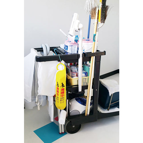 Catalogue number: 146125 Features: ● A three-dimensional sign with excellent visibility even from an oblique direction. ● Calls attention in four languages: Japanese, English, Chinese, and Korean. ● Can be stacked, so multiple items can be stored without taking up too much space. Uses: ● For toilet doorknobs, etc. Specifications: ● Display content: Cleaning in progress ● Depth (mm): 55 ● Height (mm): 500 ● Width (mm): 113 ● Two-sided display ● 4 languages (Japanese, English, Chinese, Korean) ● Installation method: Hanging type ● Stacking type Material/Finish: ● Polypropylene