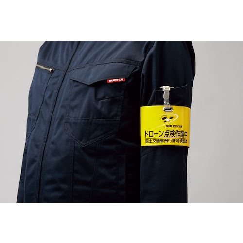 Catalog number: 139003 Features: ● Vinyl armband for drone operation. ● Dual-use pin allows for attachment without damaging clothing. Uses: ● To inform drone operation. Specifications: ● Color: Yellow ● Display: Drone inspection in progress, DRONE INSPECTION, Ministry of Land, Infrastructure, Transport and Tourism flight permission approved ● Height (mm): 90 ● Width (mm): 400 ● Width (mm): 90 ● Arm circumference (mm): 330-360 ● Thickness (mm): 0.7 ● Length (mm): 400 ● Hook-and-loop fastener + dual-use pin ● Two-language display (Japanese and English) Material/Finish: ● Body: Soft PVC Caution: ● In no-fly zones, a flight permission approval notice is required.