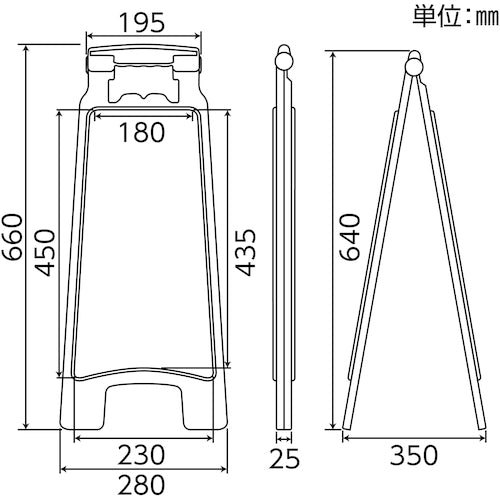 Catalog number: 337503 Features: ●Large display surface provides high visibility, and the lightweight, compact design means it can be installed anywhere. Uses: ●To clearly indicate (instruct) the relevant information. Specifications: ●Display content: Caution - Slippery. Watch your step! ●Height (mm): 640 (when in use) ●Length (mm): 660 ●Width (mm): 280 ●Thickness (mm): 25 (when folded) ●Depth when in use (mm): 350 ●Double-sided display ●Available in 4 languages ​​(Japanese, English, Chinese, Korean) Material/Finish: ●Polypropylene