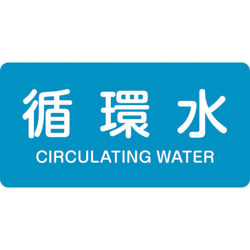 Catalogue number: 382211 Features: ●A water- and heat-resistant aluminum sticker for identifying pipes. Uses: ●For identifying substances inside pipes. Specifications: ●Display content: Circulating water/CIRCULATING WATER ●Installation specifications: Stick-on type ●Height (mm): 40 ●Width (mm): 80 ●Thickness (mm): 0.1 ●Color: Blue (2.5PB 5/8) ●Set product: 10 sheets per set Materials/Finish: ●Base material: Aluminum ●Adhesive: Acrylic