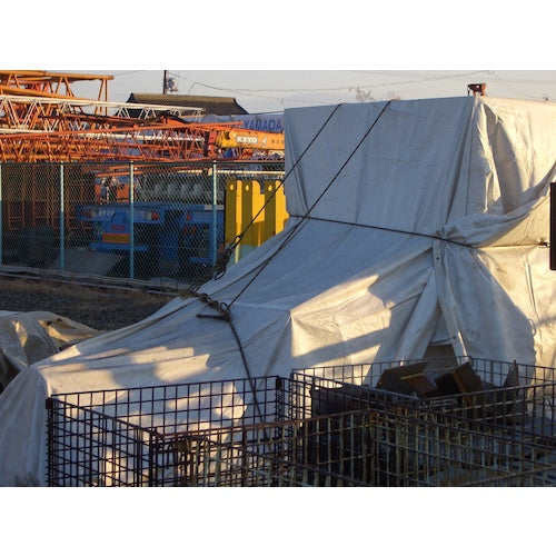 Catalog number: WHBO1836Y Features: ● Low-cost type of fireproof curing sheet. ● Ideal for short-term construction. Uses: ● For wall curing in architecture and construction, and floor curing in bridge construction. Specifications: ● Width (m): 1.8 ● Length (m): 3.6 ● Thickness (mm): 0.3 ● Number of grommets (pcs): 24 ● Grommet pitch (cm): 45 ● Tensile strength: Vertical 280N/3cm, Horizontal 100N/3cm ● Durability period: Approximately 6 to 7 months ● Tear strength: Vertical 130N, Horizontal 40N ● Color: White ● Fireproof performance test number: AFE-33-0085 ● Coating: PVC coating ● Thickness: 0.27mm ● Fireproof displayer certification number: AFE330085 Material/Finish: ● Sheet: Polyester base fabric + PVC coating ● Grommet: Aluminum (inner diameter: 12mm)