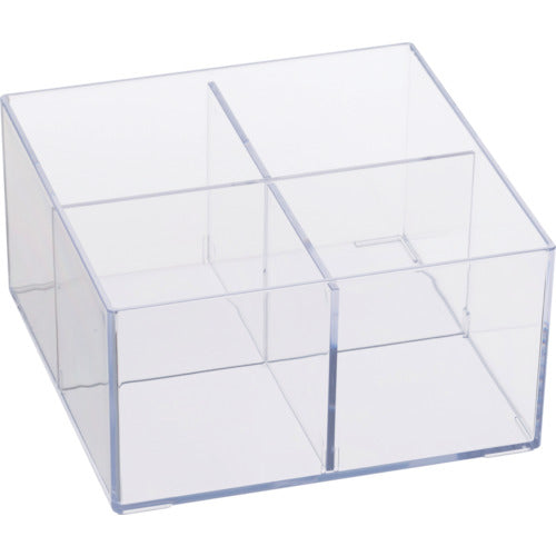 Catalogue number: 690229 Features: ●Transparent so you can see what's inside. ●Available in a wide variety of sizes to suit your needs. ●Comes with dividers. Uses: ●For managing and storing small parts. ●For transporting electronic parts and printed circuit boards. Specifications: ●Color: transparent ●External dimensions (mm) width: 161 ●External dimensions (mm) depth: 161 ●External dimensions (mm) height: 85 ●Effective internal dimensions (mm) width: 74 ●Effective internal dimensions (mm) depth: 73 ●Effective internal dimensions (mm) height: 80 ●Type: fixed divider ●Number of frames: 4 ●Fixed divider type Material/Finish: ●Styrofoam resin