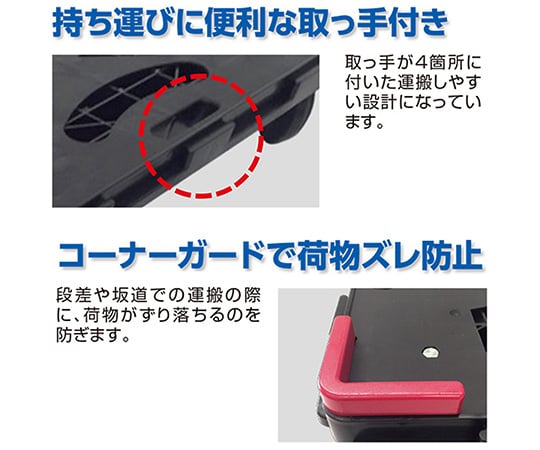 The large loading surface of 70 x 50 cm increases transportation efficiency.