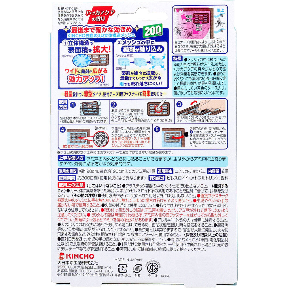 Kincho Mushi Conners Screen Door Stick-on Type 200-day Use Mint Aqua Scent 2 Pieces 1 Piece