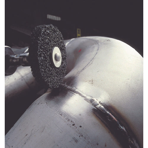 Catalog number: CNSDISC 100X8 40 Features: ●Highly flexible and has moderate stiffness, so it fits well to the unevenness of the workpiece. Uses: ●For removing rust and oxide films. ●For stripping paint. ●For removing only deposits from metal surfaces. Specifications: ●Grain size (#): Equivalent to 120 ●Outer diameter (mm): 100 ●Thickness (mm): 13 ●Hole diameter (mm): 8 ●Maximum operating speed (rpm): 6000 ●Maximum operating peripheral speed: 15.7 m/s (942 m/min) ●Maximum operating speed: 6000 rpm ●Can be used with both electric and air grinders Material/Finish: ●Abrasive: Silicon carbide Caution: ●Use with a straight grinder.