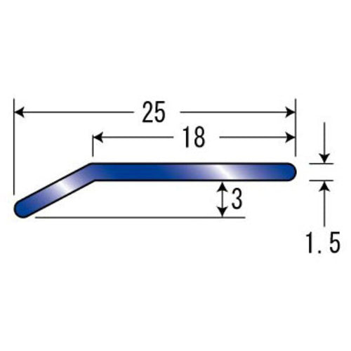 Catalog number: 20-10114H Uses: ● For holding the ends of PVC tiles, long sheets, etc. Specifications: ● Width (mm): 25 ● Thickness (mm): 1.5 ● Length (m): 2 ● Type: No holes ● Dimensions (mm) A: 18 ● For 25mm width Material/Finish: ● Stainless steel (SUS430) ● Surface treatment: Hairline finish Note: ● The color of the "H" character and the corners are slightly different.
