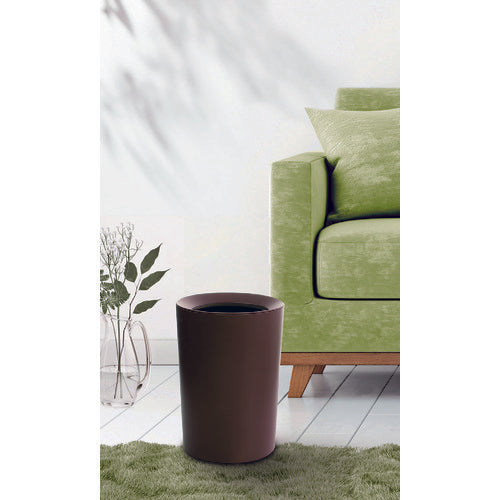 Catalog number: 621130 Features: ●Double-layered structure hides garbage bags and creates a stylish space. Uses: ●For office and factory reception areas. Specifications: ●Color: Brown ●Frontage (mm): 222 ●Depth (mm): 222 ●Height (mm): 318 ●Capacity (L): 6.7 ●Type: Round Material/Finish: ●Cover: Polypropylene, polystyrene ●Container: Polypropylene Caution: ●Do not use near fire.