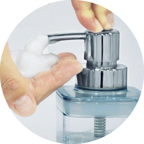 Catalog number: 522765 Features: ● The lid can be removed for easy refilling. ● The bottom is R-shaped so you can use it until the very end. Uses: ● Dispenser. Specifications: ● Capacity (ml): 300 ● Color: Clear pink ● Width (mm): 72 ● Depth (mm): 83 ● Height (mm): 165 ● Nozzle length (mm): 32 ● Bottle diameter (mm): 27 Materials/Finish: ● Body/Lid: Saturated polyester resin ● Gasket: Silicone rubber ● Pump: ABS resin (chrome plated), polypropylene (PP), stainless steel, foamed polyethylene Caution: ● Do not use near fire. ● Use a liquid detergent designed for foaming.